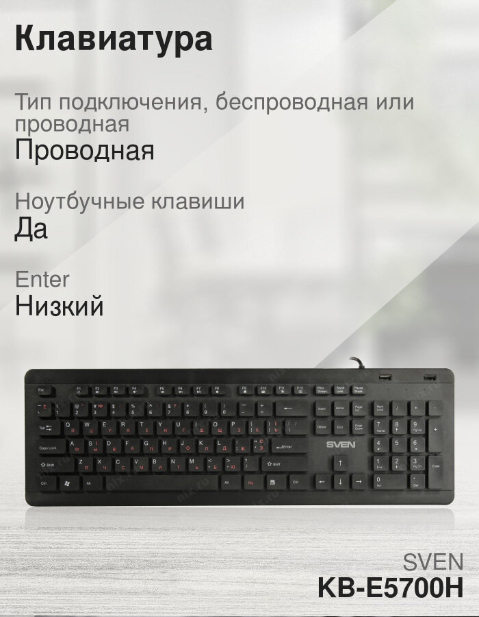 Клавиатура Sven KB-E5700H, мембранная, проводная, USB, черный (SV-019150)