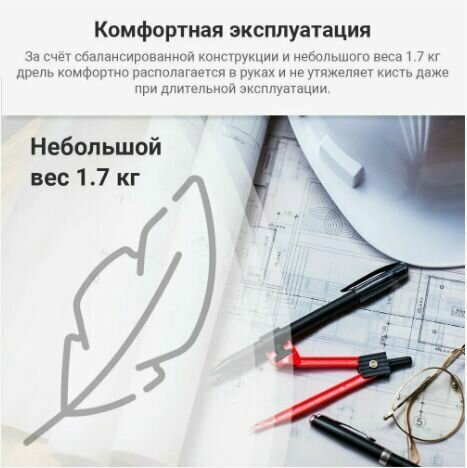 | Особенности конструкции | антивибрационная система / блокировка кнопки включения / дополнительная рукоятка / ограничитель глубины сверления / предохранительная муфта / Антивибрационная рукоятка / Защитный кожух / Ограничитель глубины / Регулируемый ограничитель / Рукоятки с резиновым покрытием |