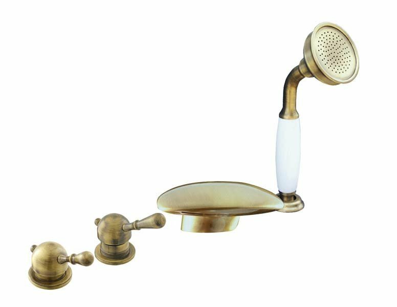 Купить Rav Slezak Labe Смеситель для ванны на 4 отверстия переключатель керамический MD0448.5 душевой шланг с пружиной 2м цвет бронза (L070.5PSM)