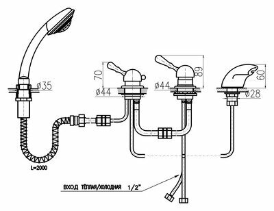 Rav Slezak Labe Смеситель для ванны на 4 отверстия переключатель керамический MD0448.5 душевой шланг с пружиной 2м цвет бронза (L070.5PSM) интересное: