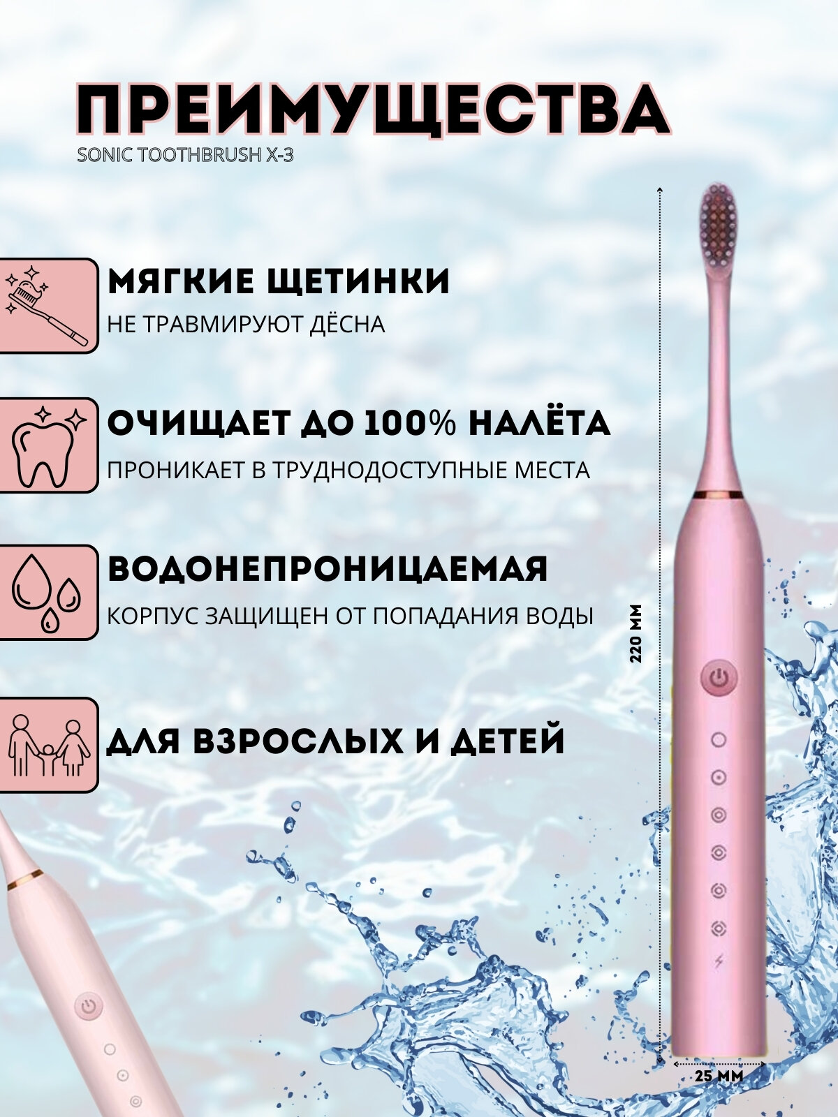 Электрическая зубная щетка Sonic X-3. Электрическая ультразвуковая зубная щетка . интересное: