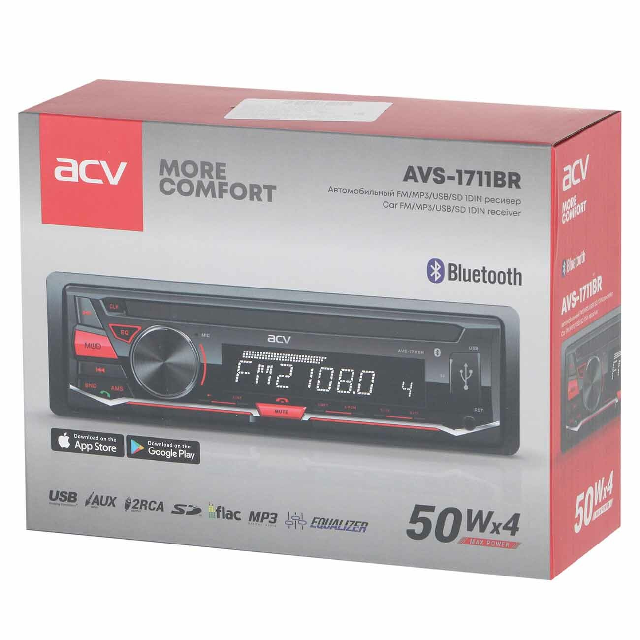 Автомагнитола ACV "AVS-1711BR", 1DIN, беспроводная связь Bluetooth, черная