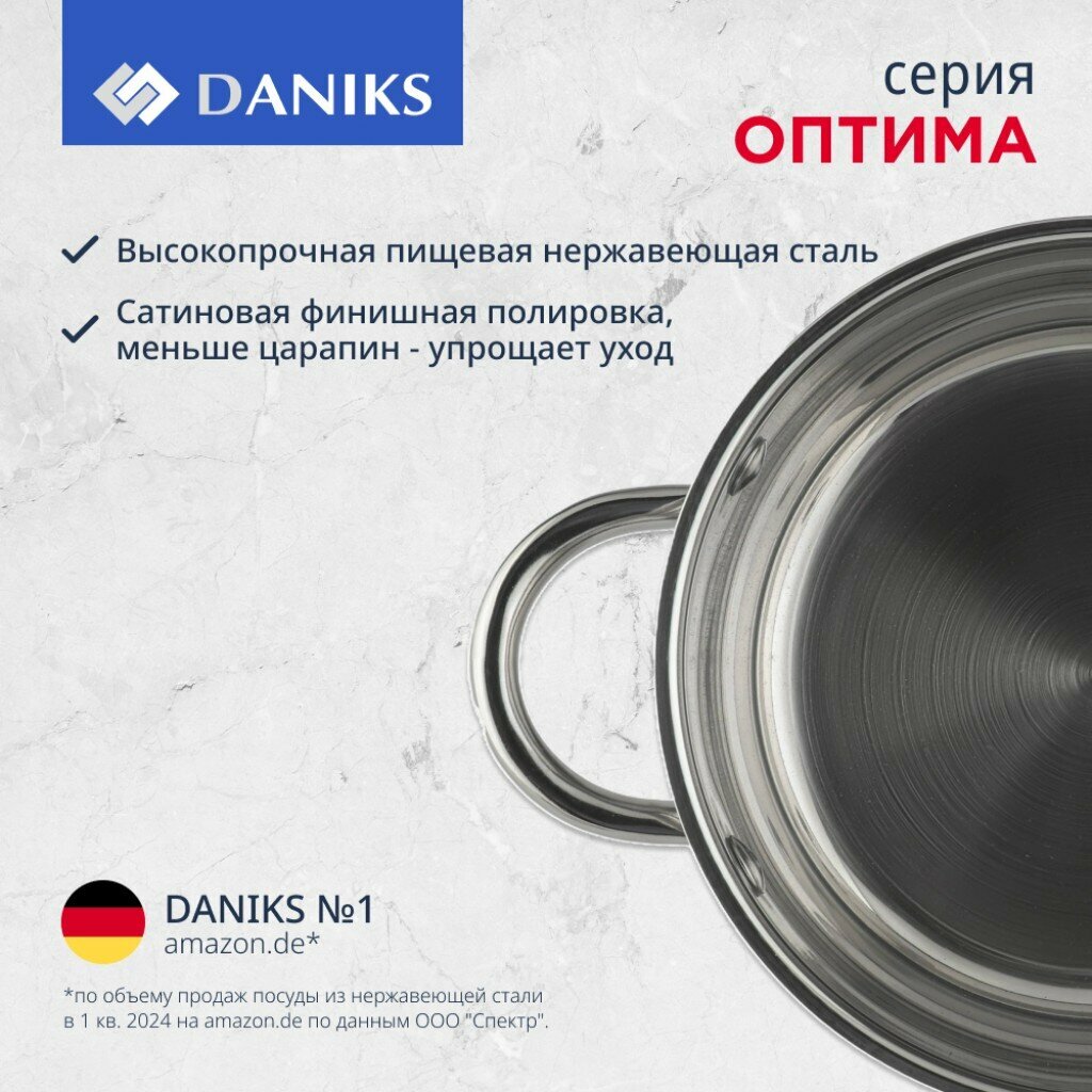 Набор посуды нержавеющая сталь, 10 предметов, кастрюли 1.5, 2.2, 3.1, 5.4 л, ковш 1.5 л, индукция, Daniks, Оптима