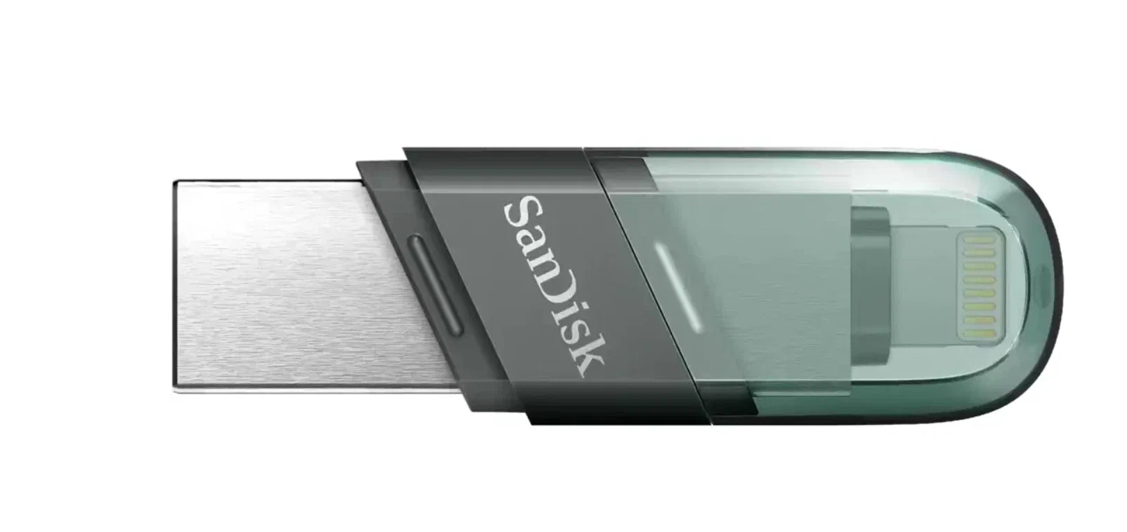 Флеш-накопитель SanDisk 256ГБ iXpand Flash Drive Flip разъемы Lightning/USB-A. Цвет: серебристо-зеленый