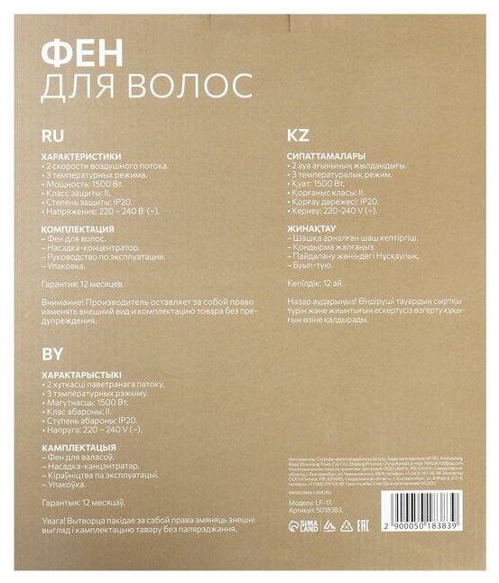 Фен (LUAZON HOME LF-17 Фен 5018383)