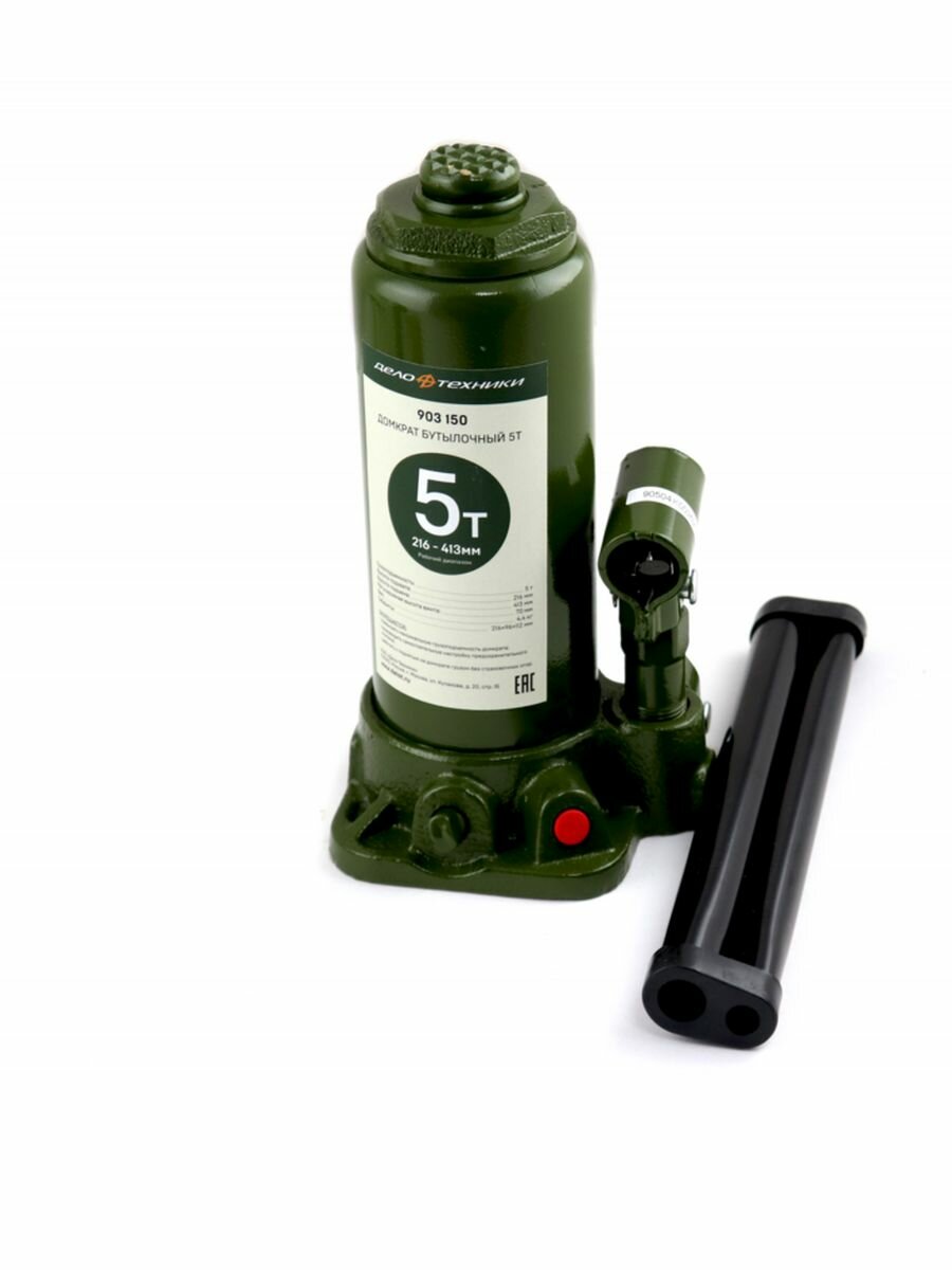 Домкрат гидравлический бутылочный 5 тонн 216—413 мм, дело техники 903150 (1 шт.)