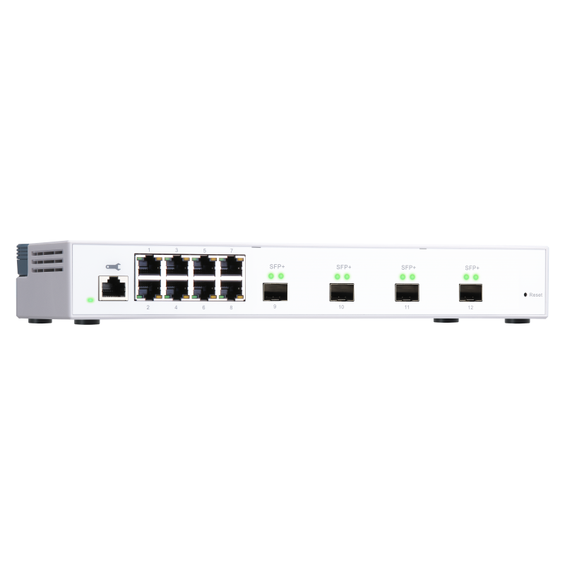 Коммутатор QNAP QSW-M408S управляемый 10 Гбит/с c 4 портами SFP+, 8 портов 1 Гбит/с RJ-45, пропускная способность до 96 Гбит/с, поддержка JumboFrame