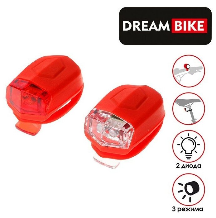 Комплект Dream Bike "JY-267-D", велосипедных фонарей, 2 диода, 3 функции, цвет красный