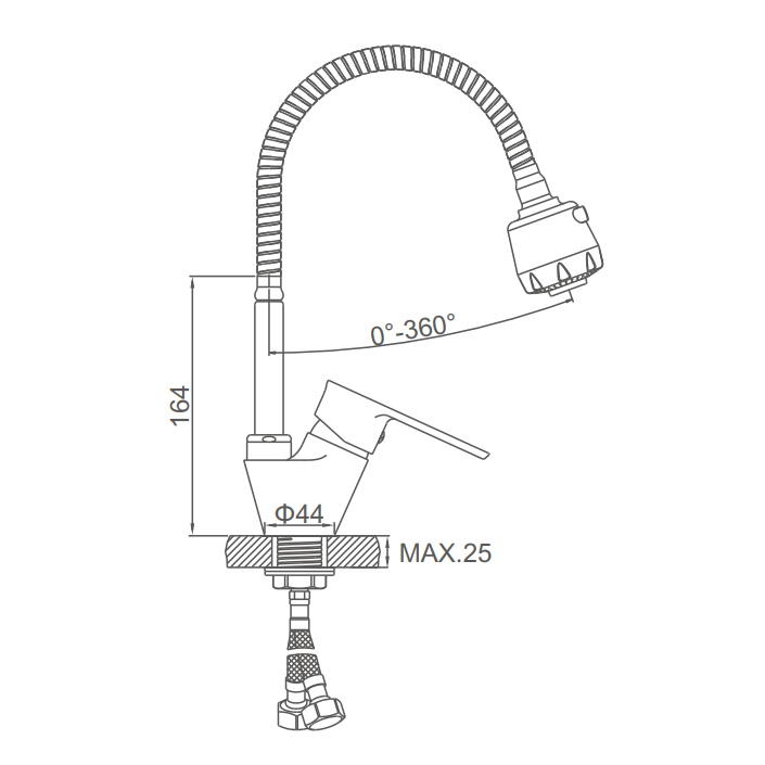 Смеситель для кухни A4864, однорычажный, гибкий излив, силумин, хром
