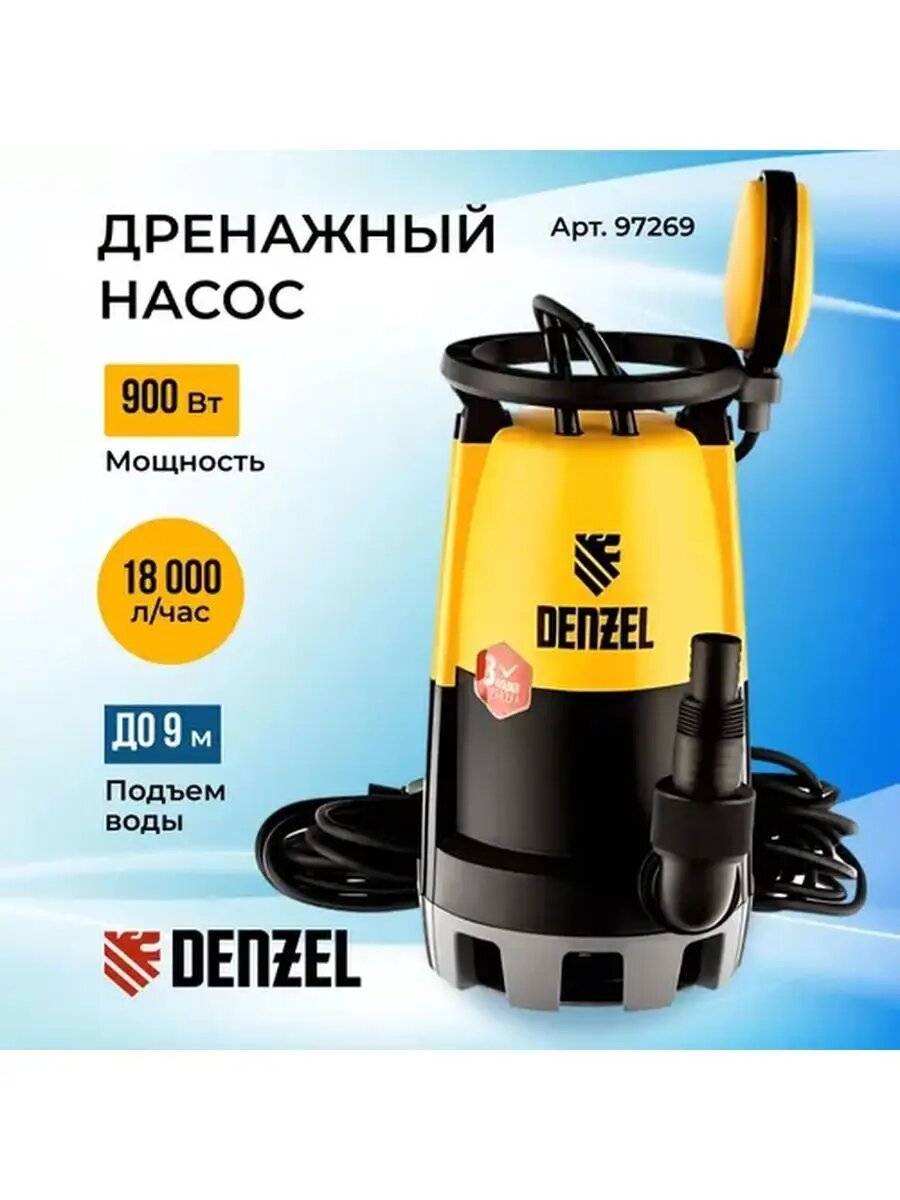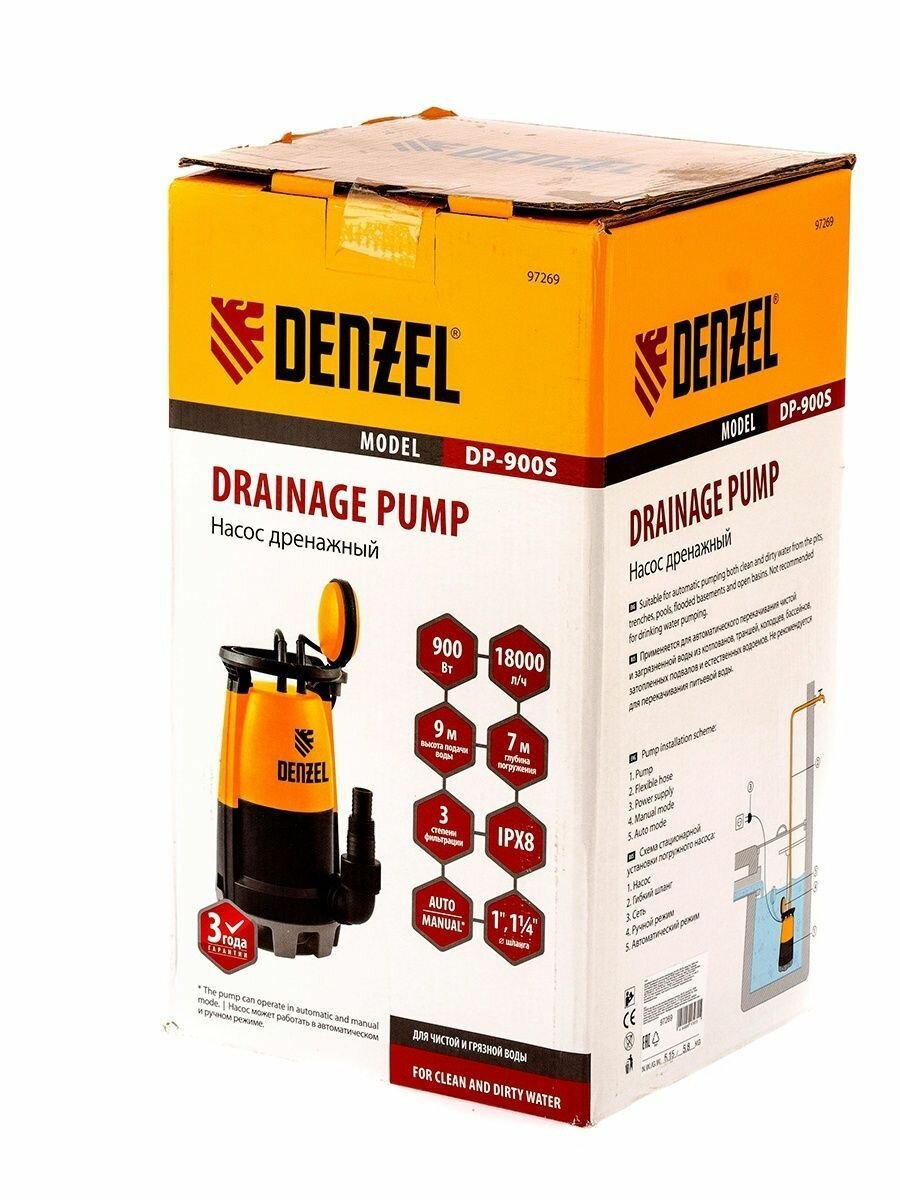 Denzel Дренажный насос для чистой и грязной воды Dp-900s 900 Вт напор 9 м 18000 л/ч 97269 .
