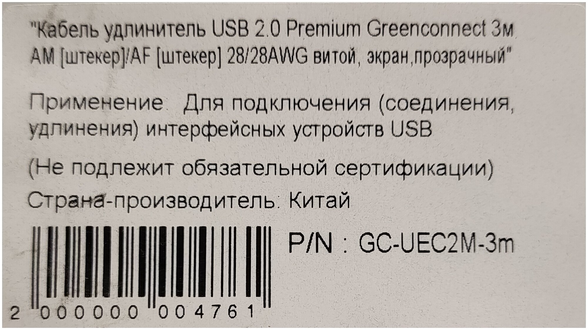 | Разъемы | USB 2.0 (am) - USB 2.0 (af) |
