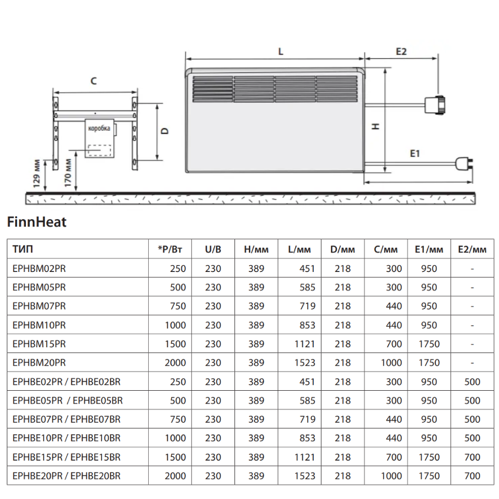 Конвектор Ensto FinnHeat EPHBE10PR