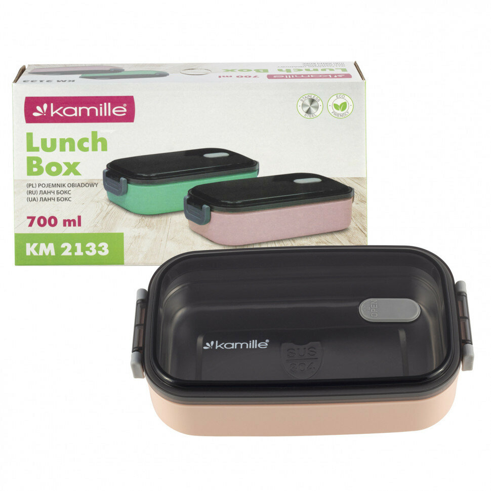 Ланч бокс 700мл (пластиковый корпус, внутри - нерж.сталь; салатовый, розовый) (арт. 2133) интересное: