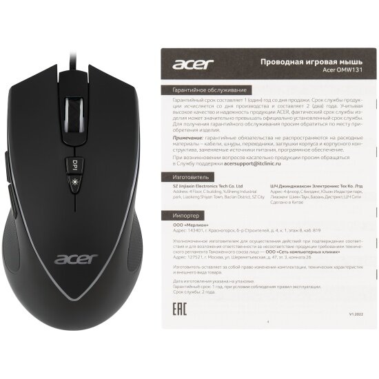 Мышь Acer OMW131 черный интересное: