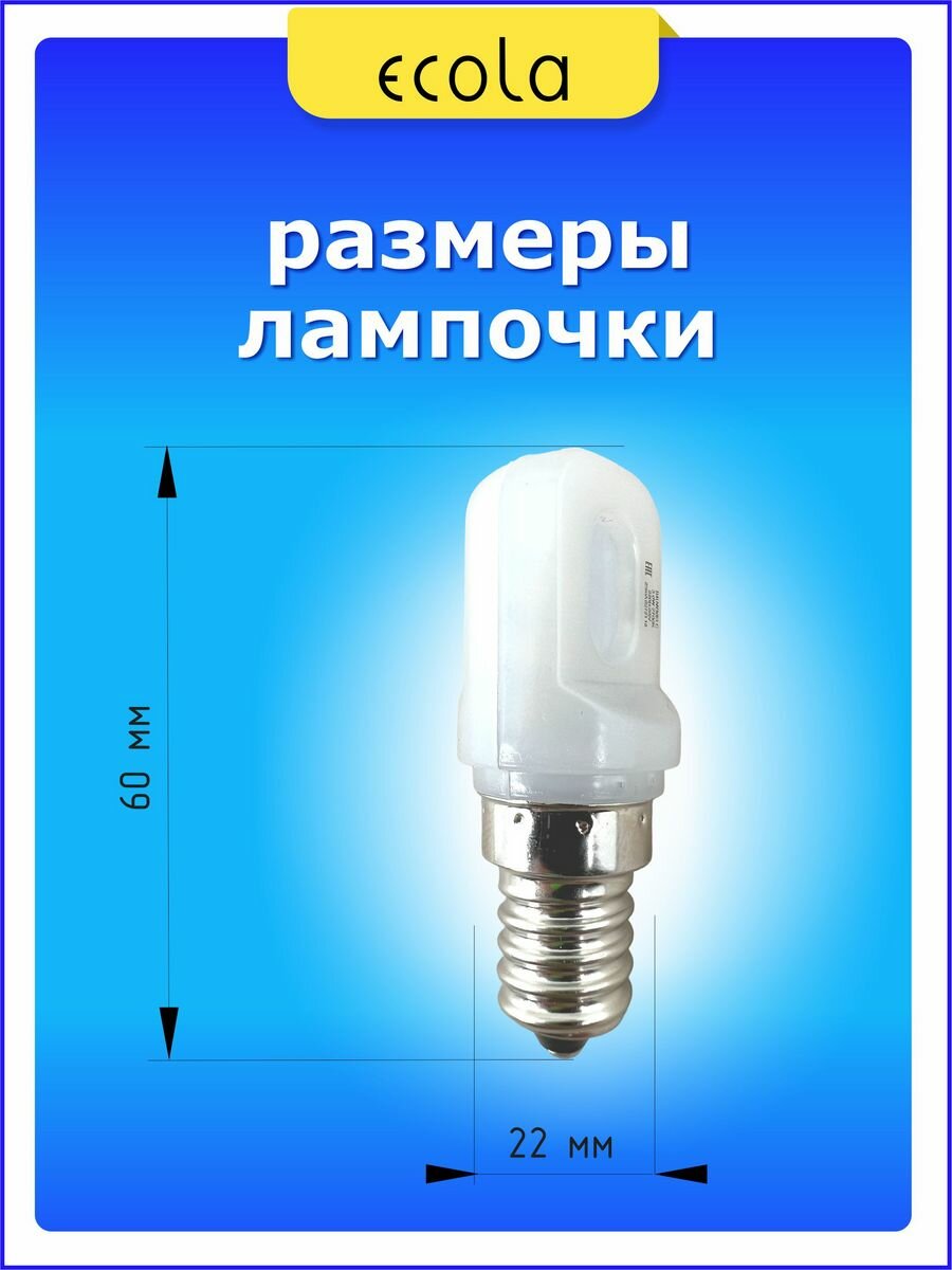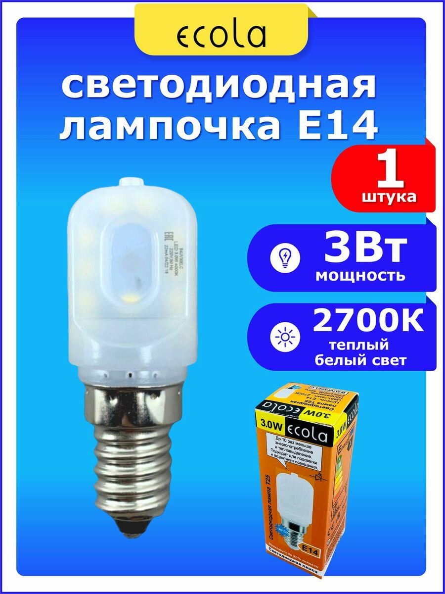 Лампа светодиодная Ecola T25, мощность 3.0 W, цоколь E14 для холодильника, швейной машинки