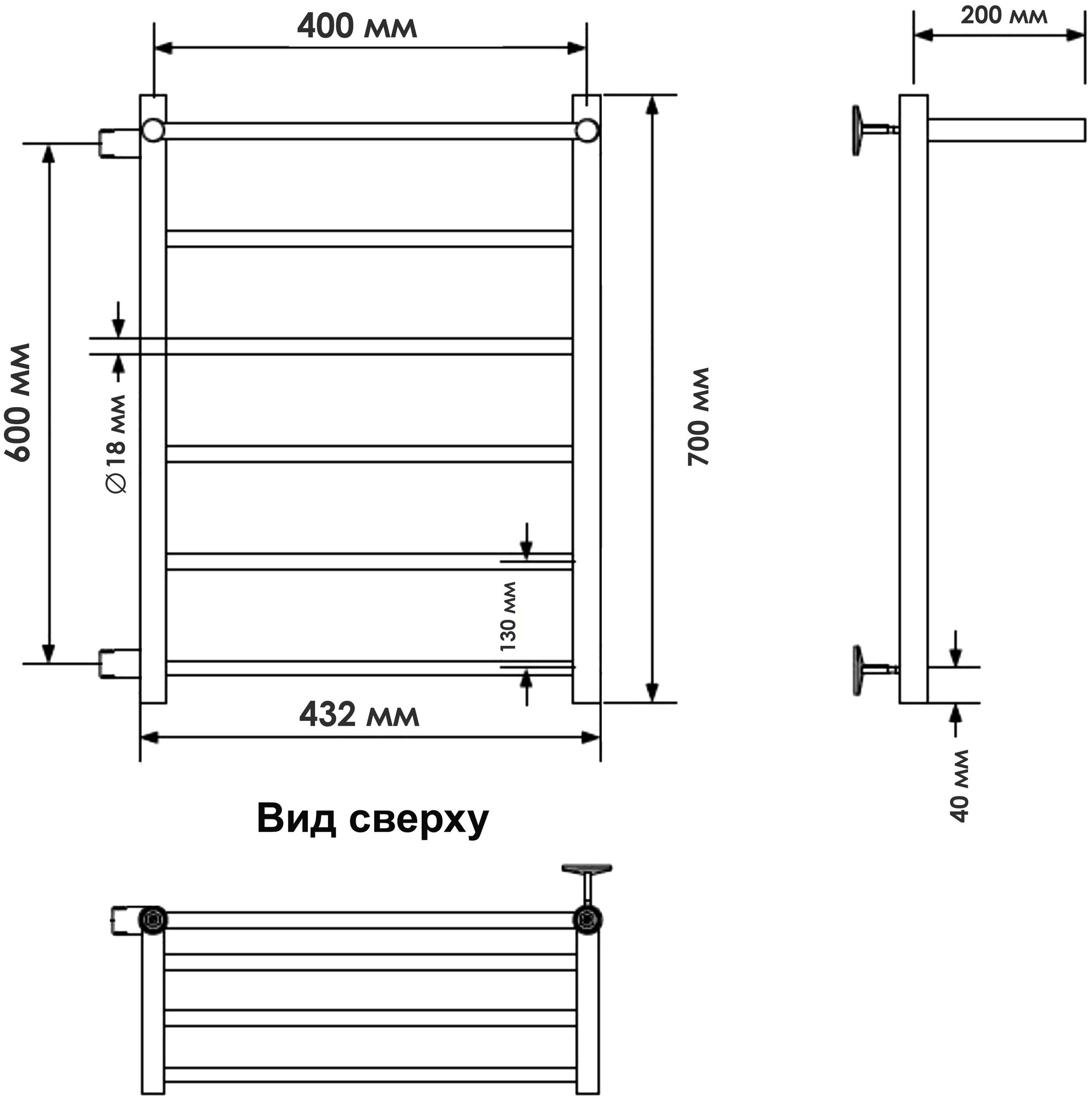 Полотенцесушитель Электрический Тругор Пэк сп 5 П 60х50 черный ВГП