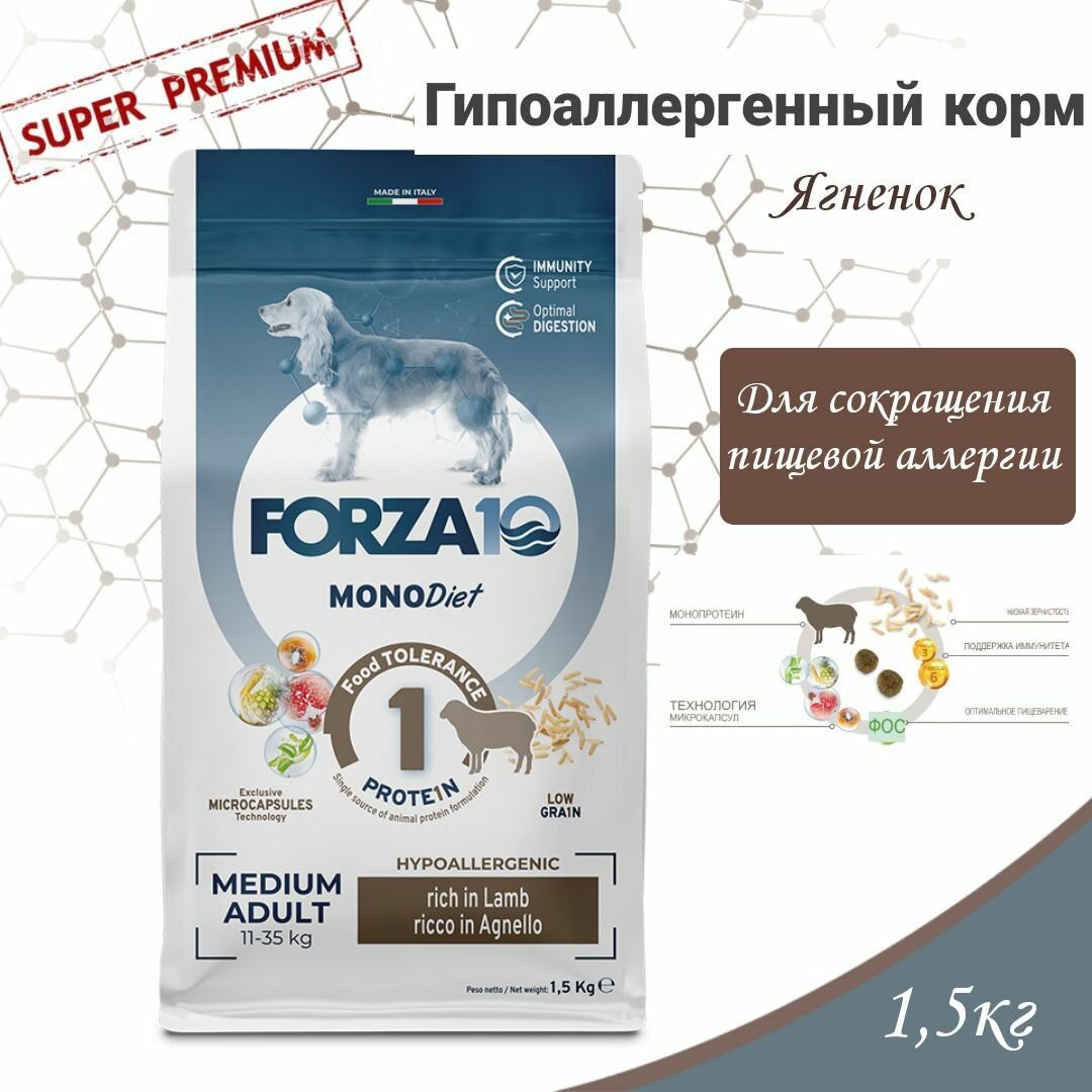 Forza 10 корм для взрослых собак средних пород при аллергии и пищевой непереносимости, ягненок 1,5 кг