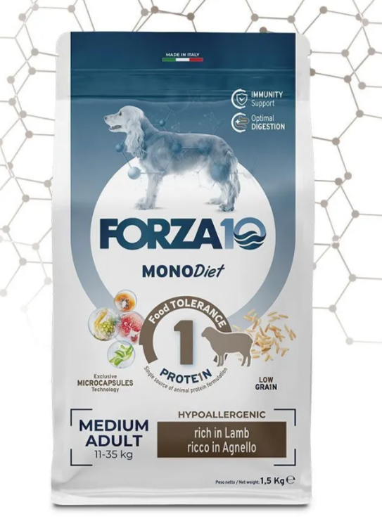 FORZA10 DOG MEDIUM DIET монобелковый для взрослых собак средних пород при аллергии с ягненком (1,5 кг)
