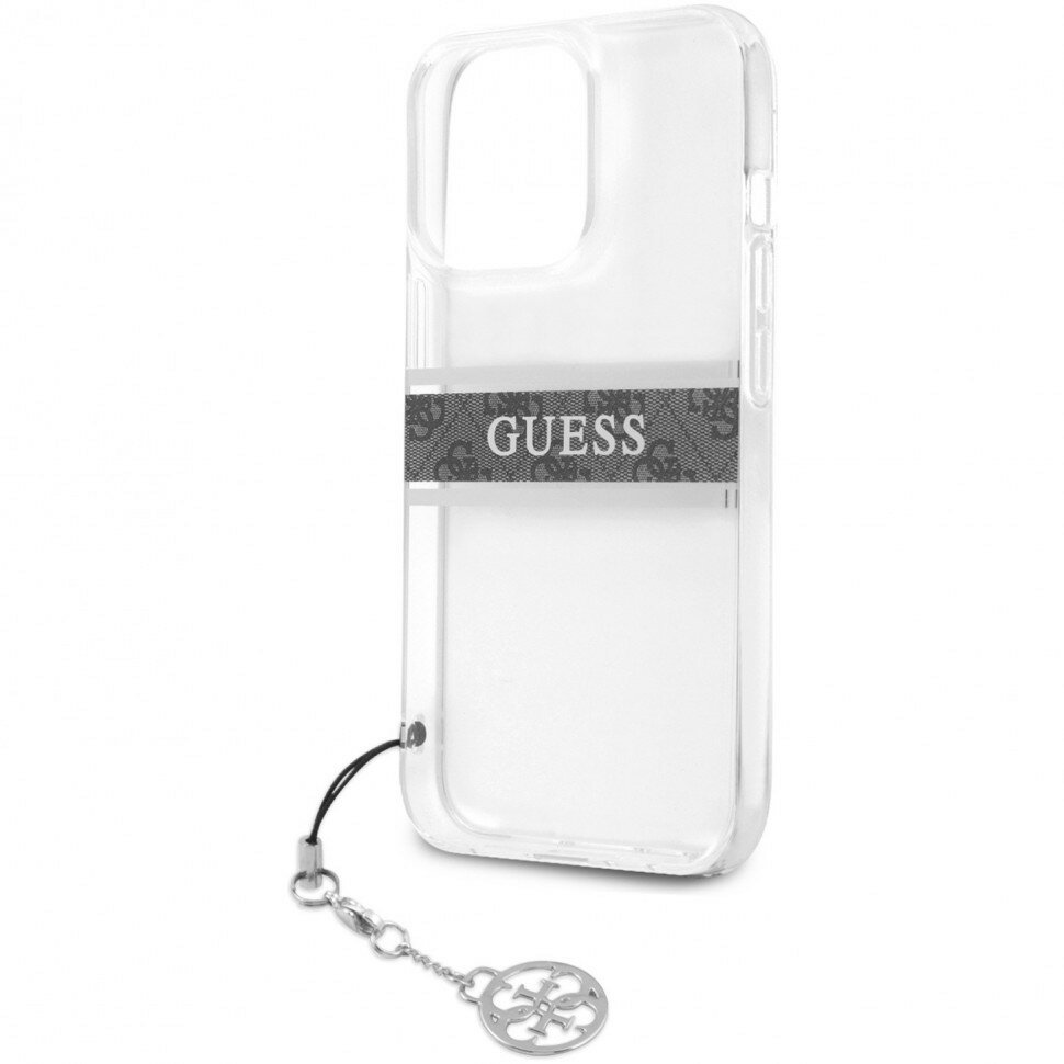 Чехол Guess TRANSPARENT 4G STRIPE WITH SILVER CHARM для iPhone 13 Pro, серый