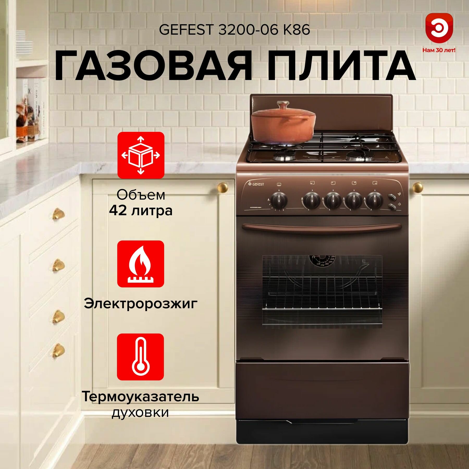 Плита газовая GEFEST 3200-06 К86, коричневый