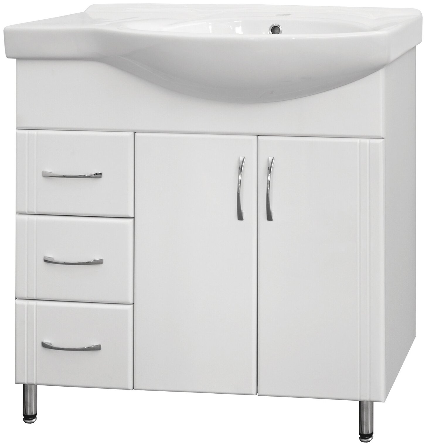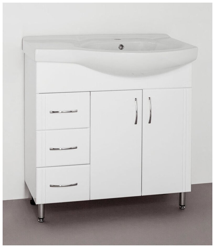 Тумба с раковиной Style Line Эко Стандарт 25 (3 ящ.) левая + Умывальник Коралл 82, левая Белый