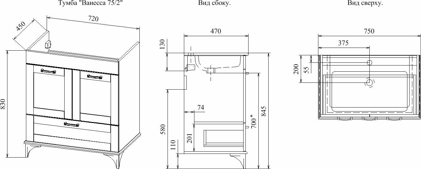 | Дополнительная информация | Оснащение | опорные ножки/подвесы;Модель | Ванесса;Серия | Ванесса;Вид раковины | накладная (мебельная);Диаметр слива, см | 4.5;Донный клапан | приобретается отдельно;Линии форм основания под раковину | баланс;Линии форм раковины | баланс;Намеченные отверстия под смеситель | нет;Поверхность корпуса | матовая;Поверхность фасада | матовая;Раковина-столешница | нет;Расположение смесителя | посередине;Расстояние от смесителя до слива, см | 14,5;Система хранения | ящики/дверки;Слив-перелив | в комплекте;Со скрытым сливом | нет;Тумба со столешницей | нет;Форма раковины | прямоугольная;Цвет раковины | белый; |