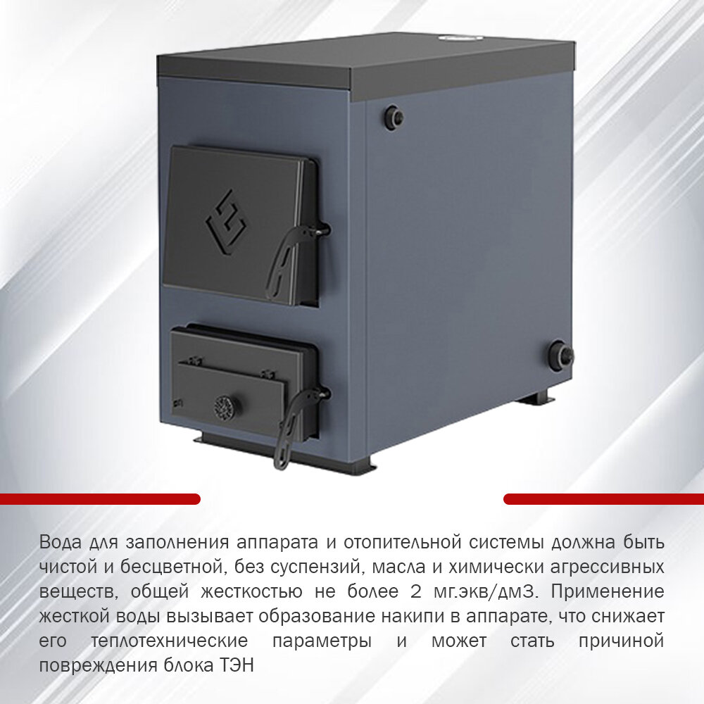 | Комплектация | Котел твердотопливный / зольный ящик / кочерга / совок / чугунный колосник / щетка |