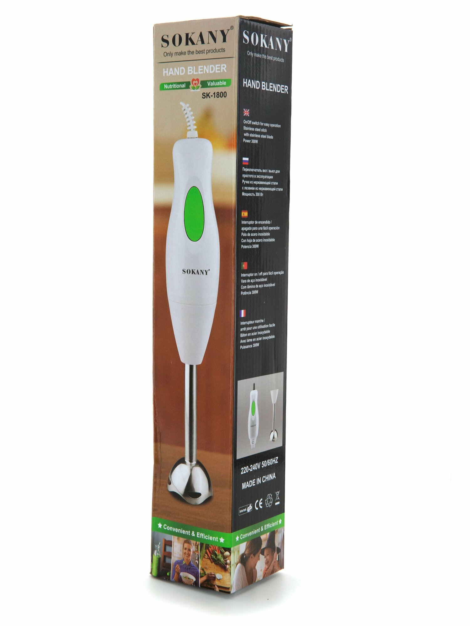 Погружной блендер SOKANY SK-1800/компактный/ручной/UNIVERSAL/нержавеющая сталь/легко смешивать, измельчать и взбивать продукты/белый