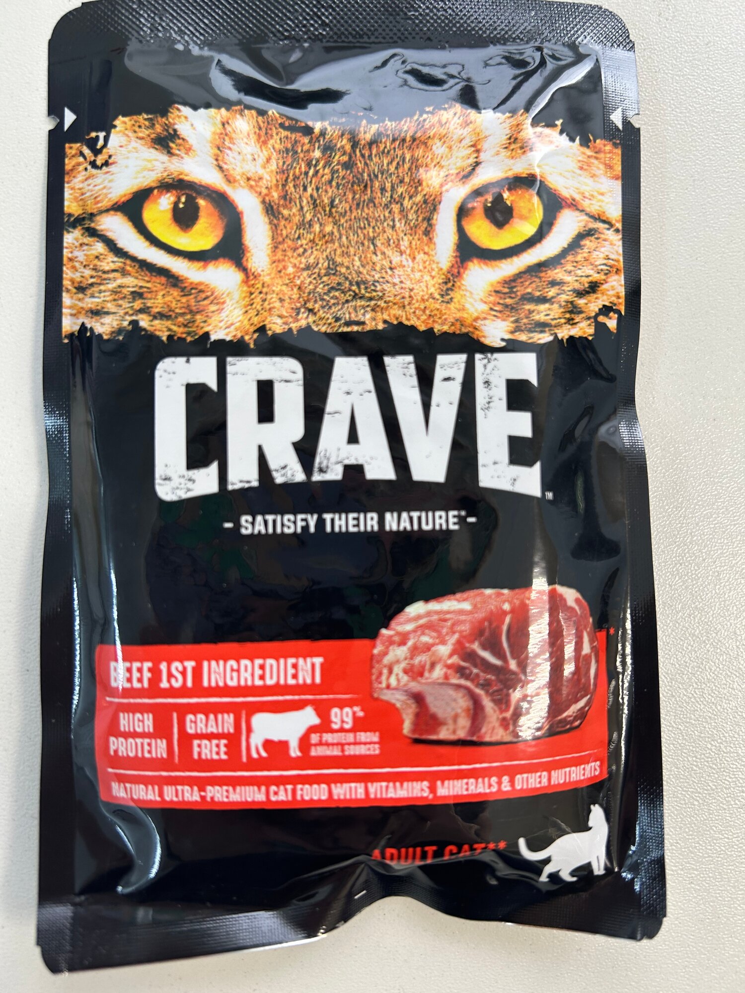 Влажный корм CRAVE для взрослых кошек, с говядиной (пауч) 70гр