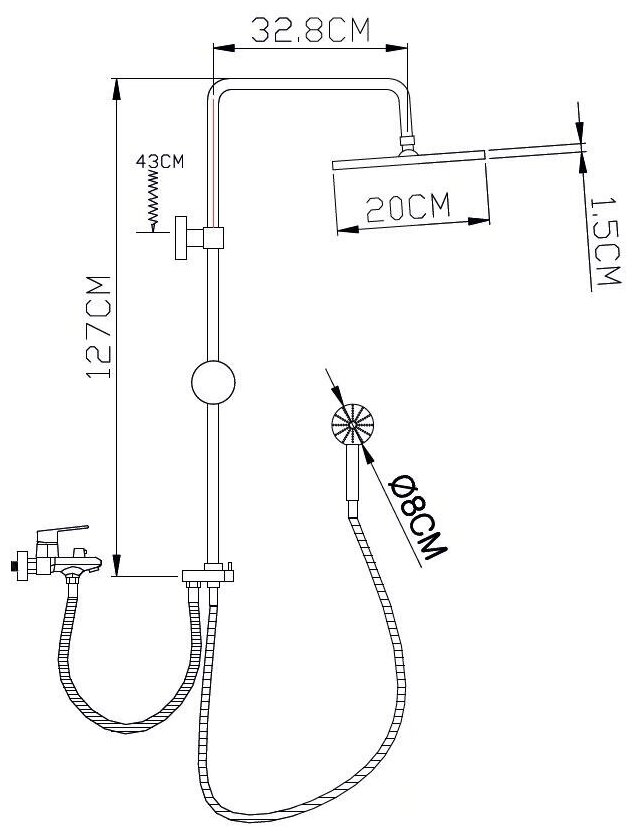 | Дополнительная информация | высота стойки для душа: 1310 мм; диаметр душевой лейки: 80 мм; диаметр верхнего душа: 200 мм |