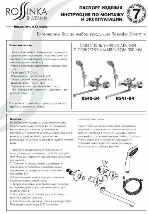 Душевой гарнитур Rossinka Silvermix RS40-84, хром интересное: