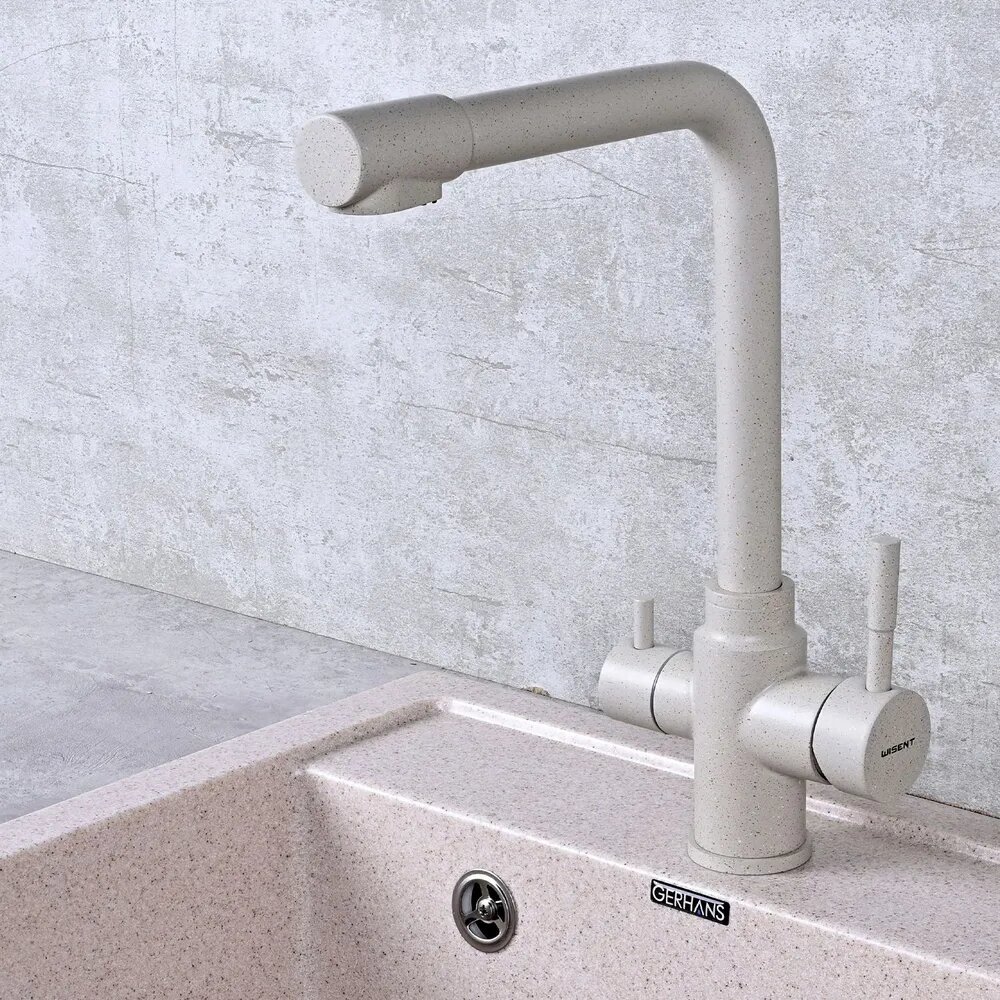 Купить Смеситель для кухни WISENT 4355-3-20 с подводкой питьевой воды (бежевый)