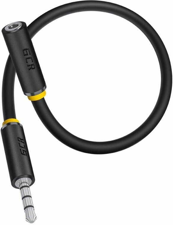 Купить Удлинитель для гарнитуры GCR 0.15m jack 3,5mm/jack 3,5mm черный, желтая окантовка, 28AWG, M/F, GCR-5