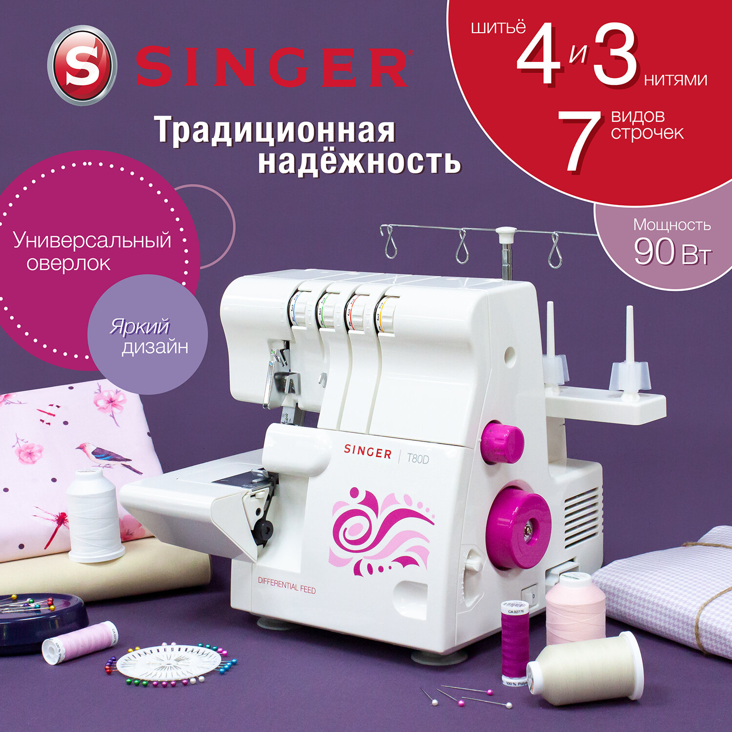 Ниже Вы можете прочитать отзывы на Оверлок Singer T80D, ознакомится с подробными характеристиками, посмотреть интересные обзоры и фотографии на Оверлок Singer T80D.