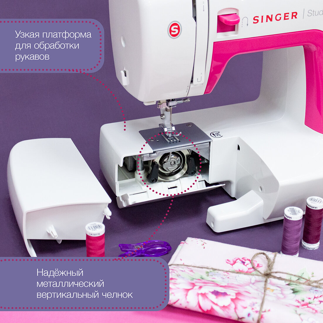 | Плюсы: | Есть возможность докупить дополнительные лапки и шпульки |