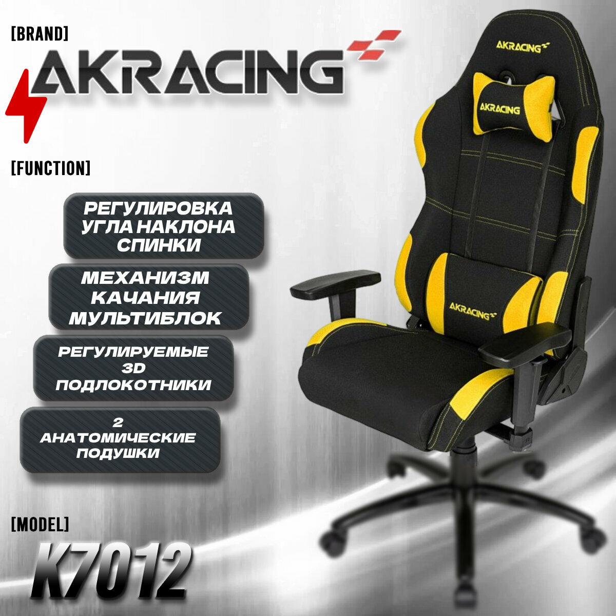 Кресло геймерское AKRACING K7012 (AK-7012-BY) black/yellow