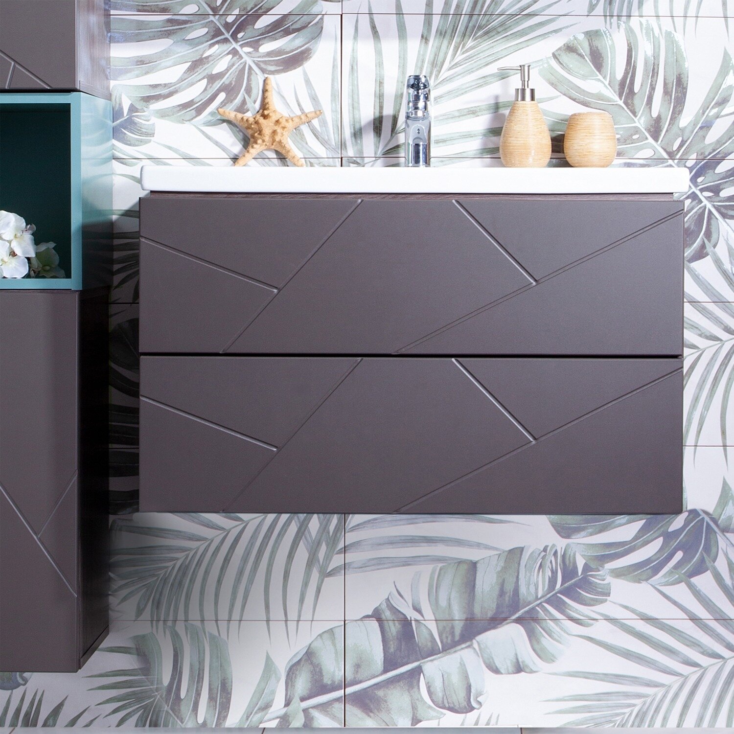 Бриклаер Тумба с раковиной Бриклаер Кристалл 80 софт графит