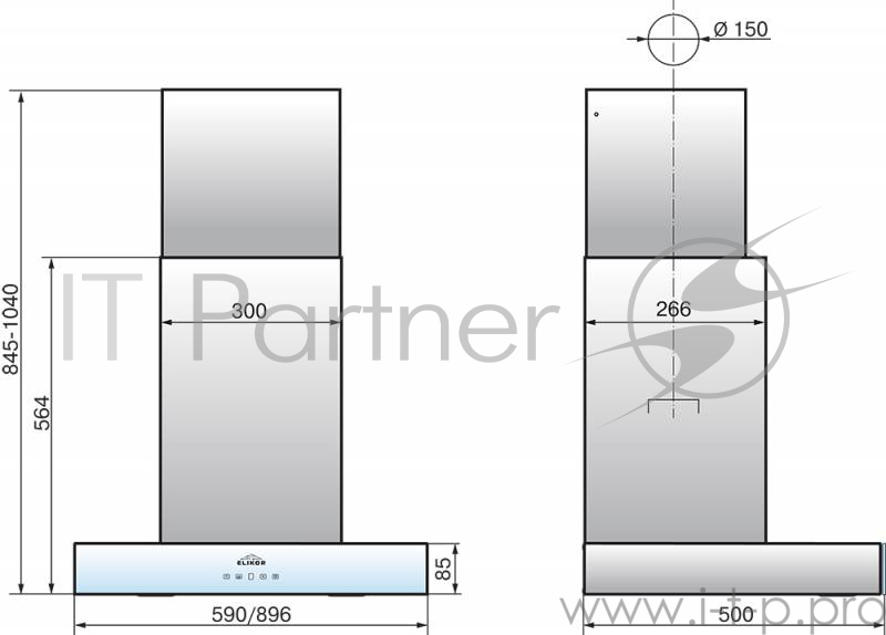 Вытяжка Elikor Агат 90 нержавейка / белое стекло 500x896x1040