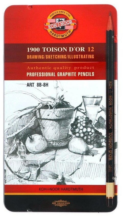 Ниже Вы можете прочитать отзывы на Набор карандашей чернографитных разной твердости 12 штук Koh-I-Noor TOISON D`OR 1902 ART 8B-8H, металлический пенал, ознакомится с подробными характеристиками, посмотреть интересные обзоры и фотографии на Набор карандашей чернографитных разной твердости 12 штук Koh-I-Noor TOISON D`OR 1902 ART 8B-8H, металлический пенал.