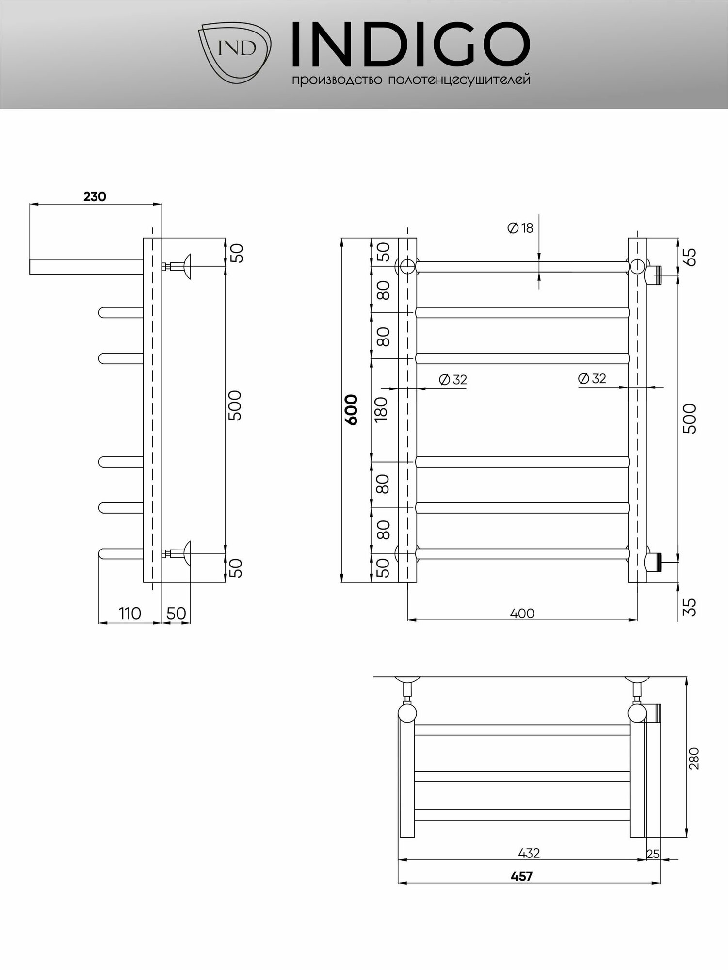 Полотенцесушитель Indigo® Brace LBCW60-40PR-б/п-50 60/40 м/о 50