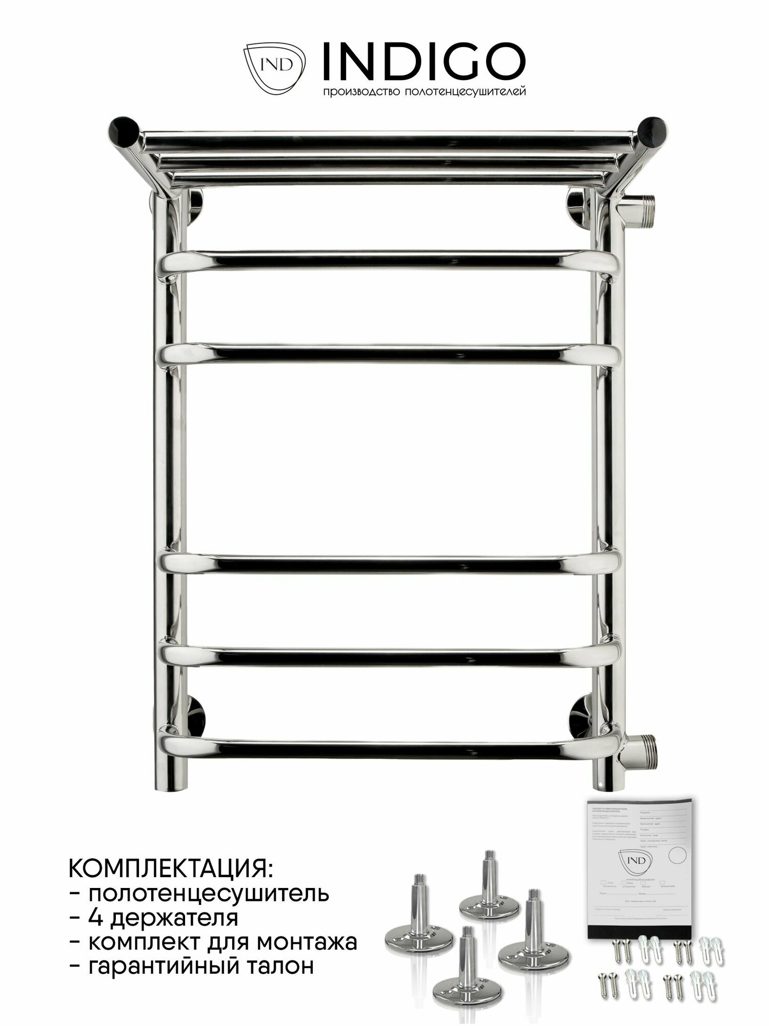 INDIGO LBCW60-40PR-б/п-50 Водяной полотенцесушитель с полочкой, серебристый