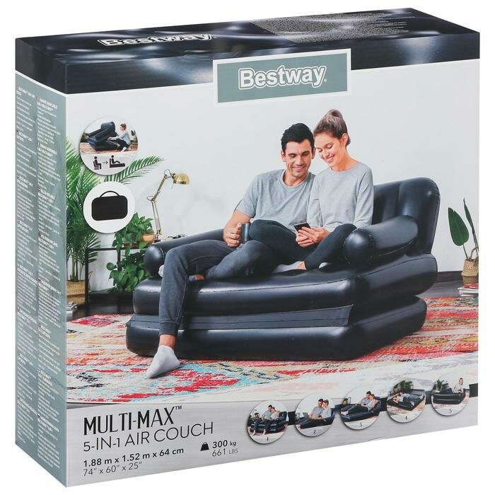 Надувной диван Bestway 5-in-1 Multifunctional Couch 75054, 188х152 см, черный