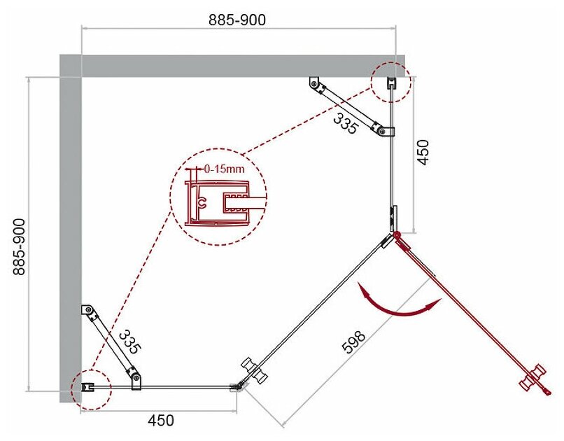 Душевой уголок Belbagno KRAFT P 1 90 C Cr R
