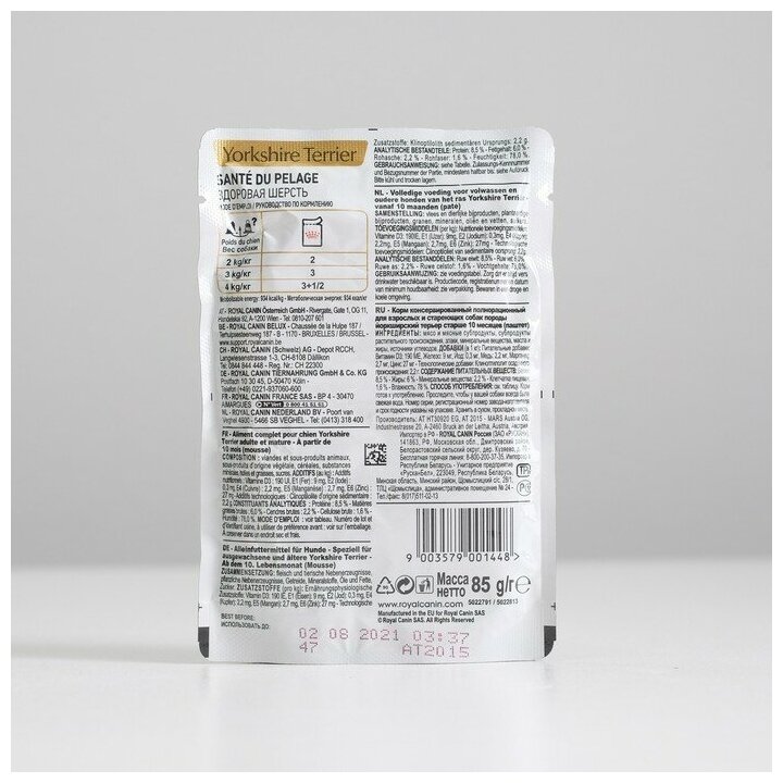 СохранитьВлажный корм для собак Royal Canin породы Йоркширский терьер, для здоровья кожи и шерсти 12 шт. х 85 г интересное:
