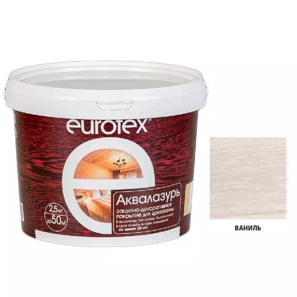 Антисептик Eurotex Аквалазурь 2.5кг Ваниль Акриловый для Внутренних и Наружных Работ / Евротекс Аквалазурь.