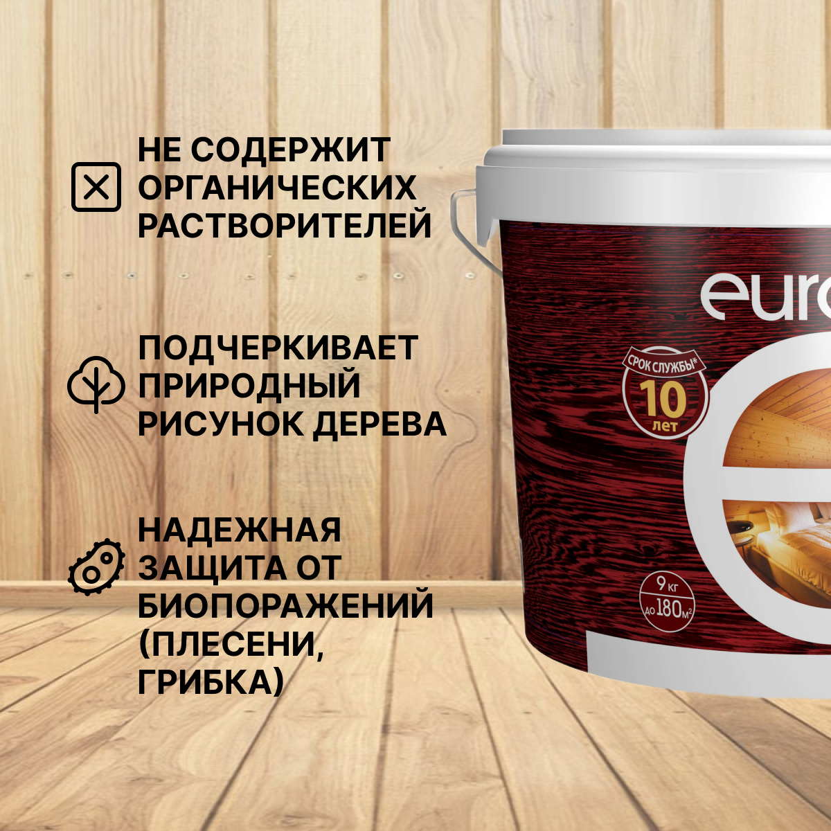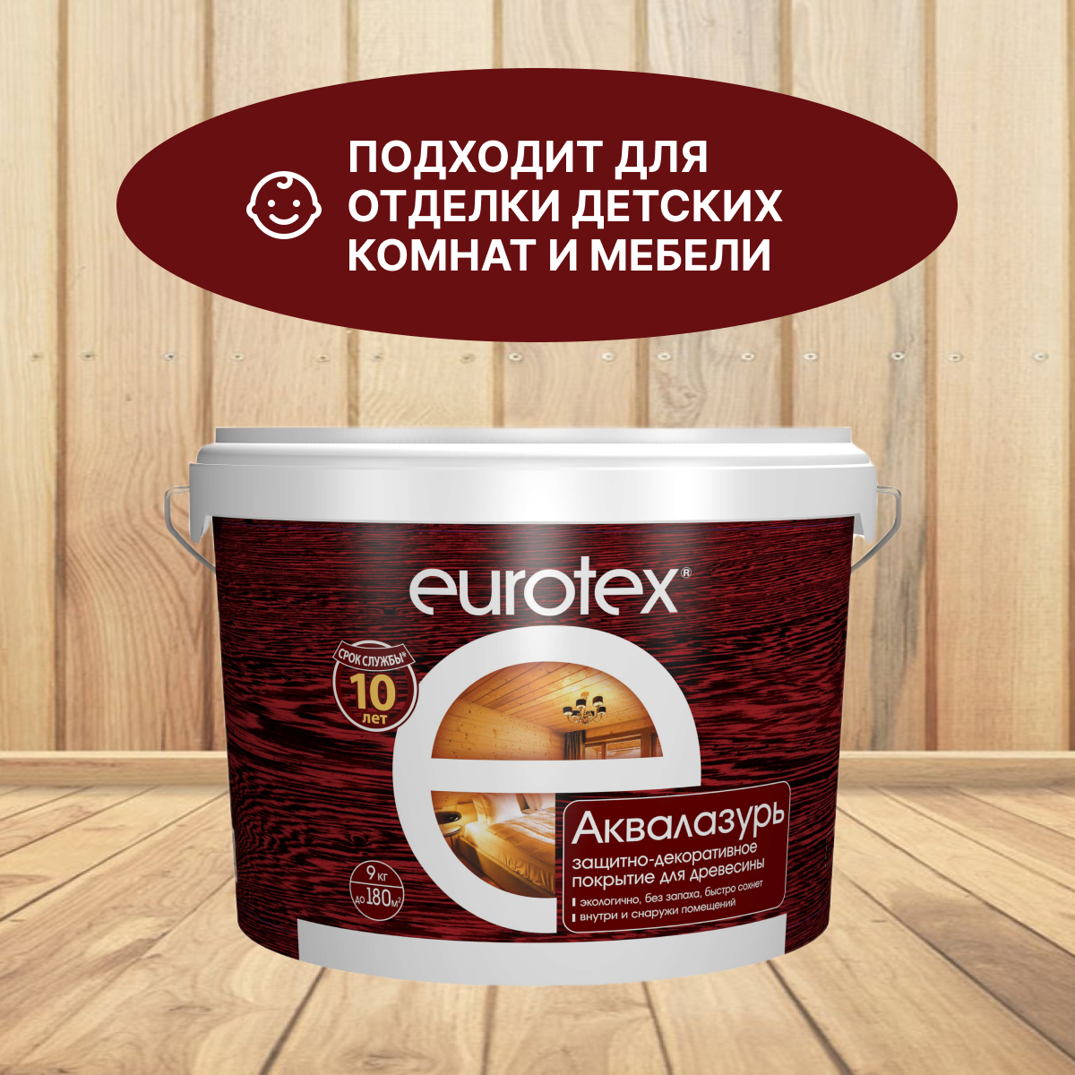 Антисептик Eurotex Аквалазурь 9кг Сосна Акриловый для Внутренних и Наружных Работ / Евротекс Аквалазурь.