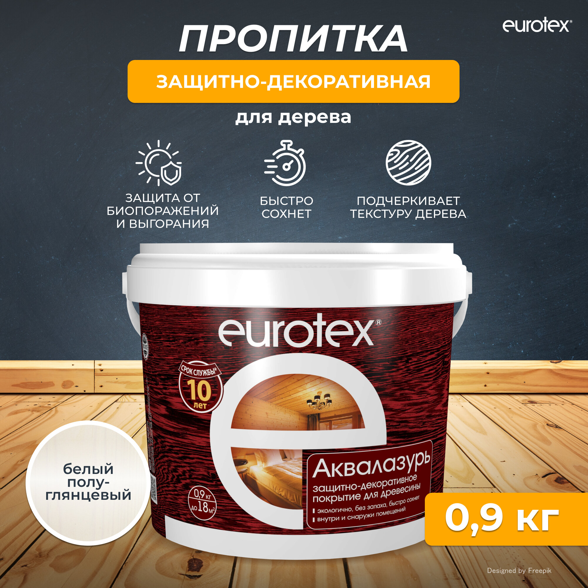 Аквалазурь EUROTEX защитно-декоративное покрытие для дерева, Белый 0,9кг