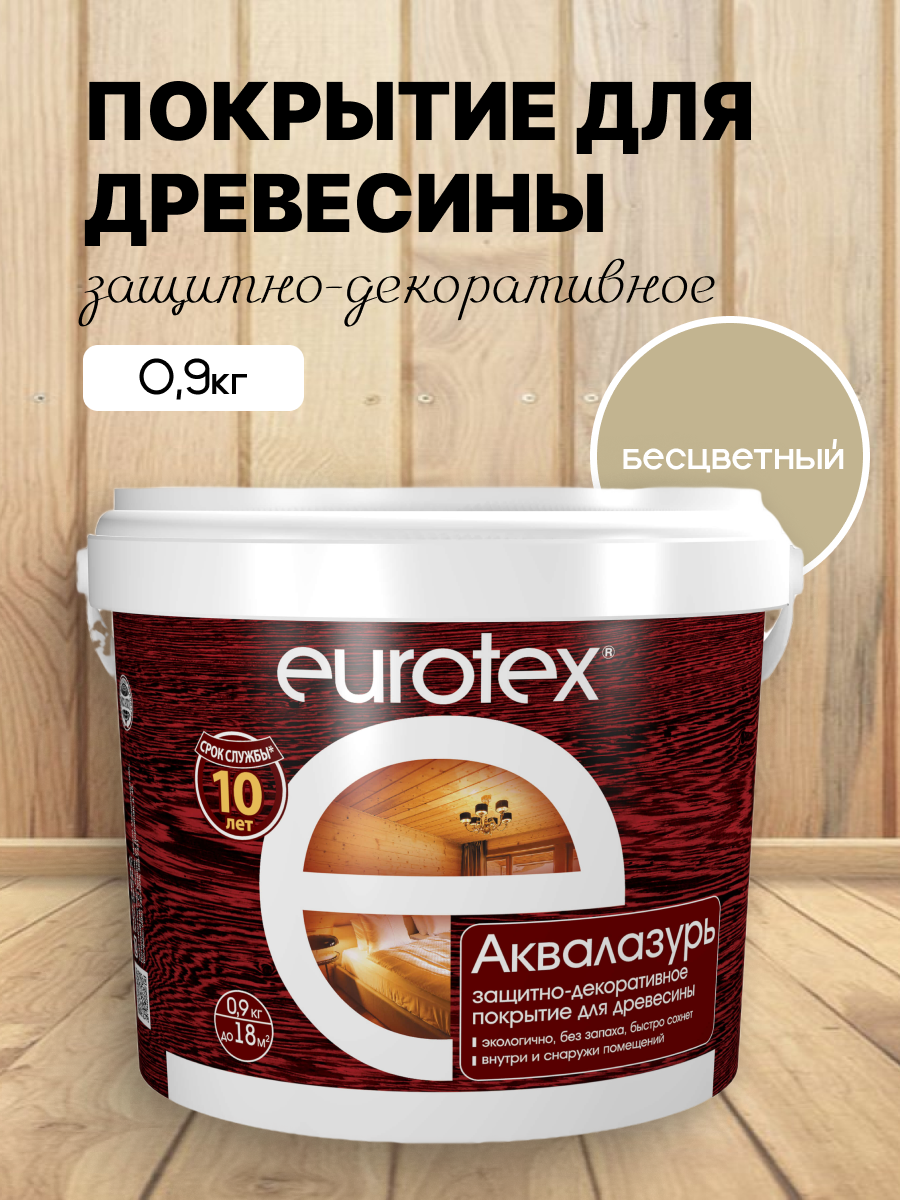 Аквалазурь EUROTEX защитно-декоративное покрытие для дерева, Бесцветный 0,9кг
