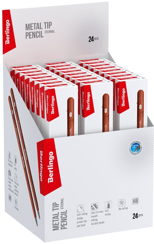 Вечный карандаш НВ Berlingo Enternal, с металлическим наконечником, корпус черный, картонная коробка