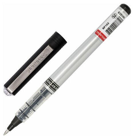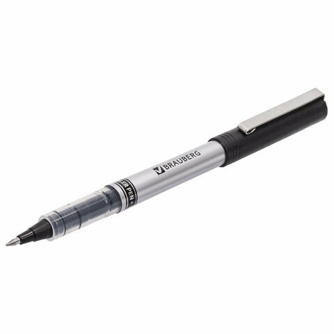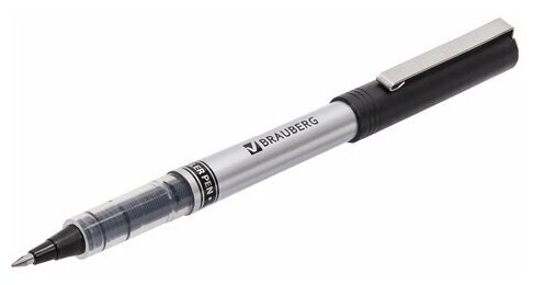 Ручка-роллер BRAUBERG "Flagman", черная, корпус серебристый, хромированные детали, узел 0,5 мм, линия письма 0,3 мм, 141555 (цена за 1 ед.товара)